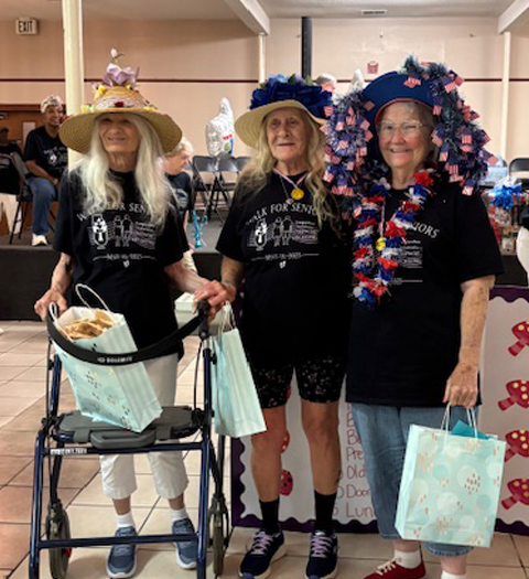 Walkers gathered outside the very hot day, but shaded, to win the prize for the most laps walked. Prizes were given to Mr. Gerald Robinson, 51 laps, the man who walked the most and Ms. Irma James, 64 laps, the woman who walked the most. Both winners are from Independence.