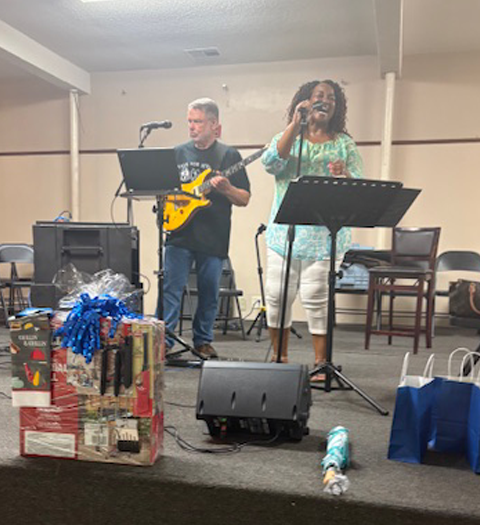 After the great meal was served, we were honored with the fantastic music of John Rothermel and Charlene Ennis Shockley-Kelly, who regularly perform with the Mo and Jo Show. They were absolutely fabulous! Some line dancing occurred as well as a fan dance—so much fun!
